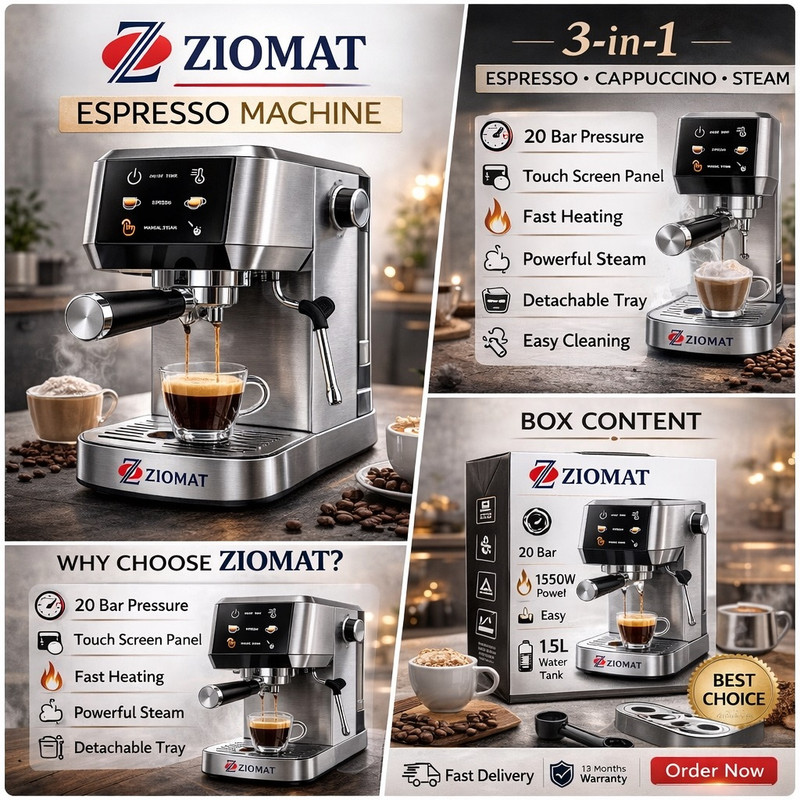 زیومات، نماد کیفیت و نوآوری در لوازم خانگی، این اسپرسوساز را برای استفاده در منازل، ادارات و فضاهای اقامتی مشابه طراحی کرده است تا با عملکرد ایمن، کاربری راحت و رویه رسوب زدایی و تمیزکاری آسان، استانداردهای جدیدی در تهیه قهوه تعریف کند. با زیومات، کیفیت برتر قهوه را کشف کنید و تجربهای حرفهای را به خانه بیاورید، جایی که هر فنجان، شاهکاری از طعم و عطر است.