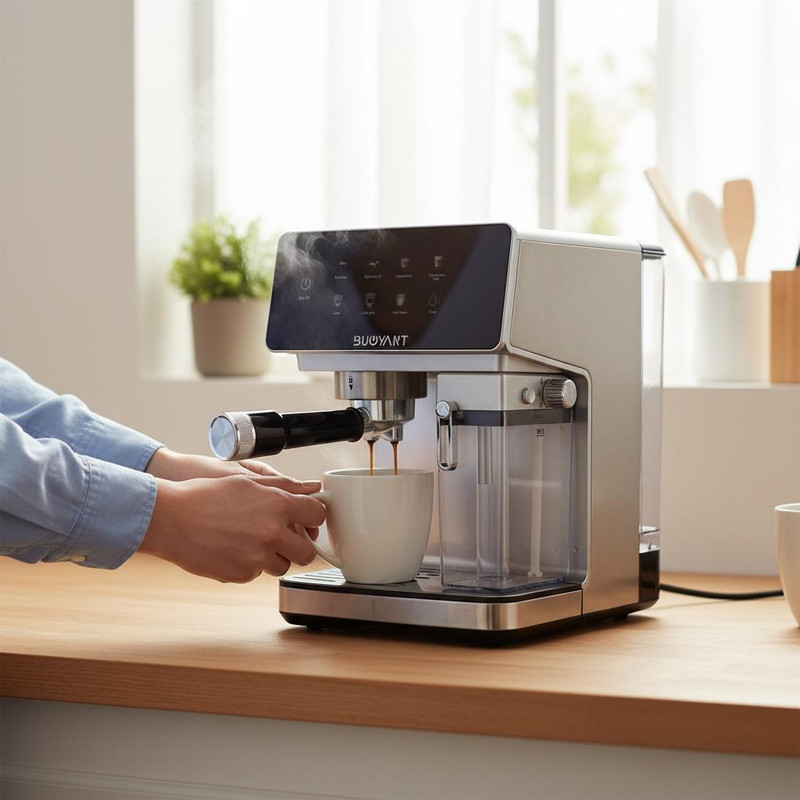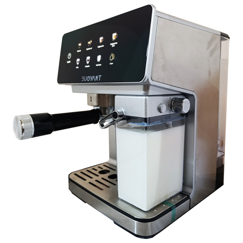 اسپرسوساز بویانت مدل BC950 با ظاهر مدرن و خطوط منحنی خود، جلوهای خاص به آشپزخانه میبخشد. بدنهی مقاوم از جنس استیل ضدزنگ و پلاستیک باکیفیت، دوام بالا و زیبایی همزمان را تضمین میکند. صفحهی کنترل لمسی و نمایشگر دیجیتال، استفاده از دستگاه را بسیار ساده کرده و به کاربر اجازه میدهد با چند لمس ساده، تنظیمات دلخواه را اعمال کند.