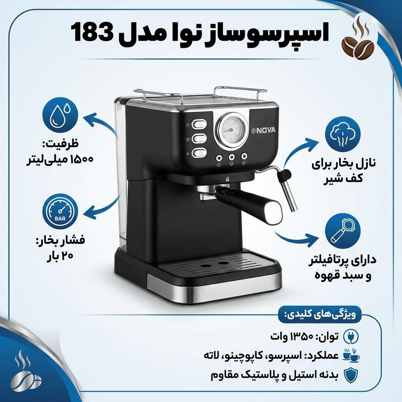 برند نوا متعلق به کشور ژاپن است که در طول سال ها با تولید انواع لوازم خانگی توانسته به یک محبوبیت خاص در بین مردم برسد. اما بیشتر این محبوبیت به خاطر ساخت اسپرسوساز ها می باشد. این برند، اسپرسو ساز هایی در مدل های مختلف روزانه روانه بازار کرده است. که در بین آنها بعضی از مدل های نوا توانسته گوی سبقت را از رقبای خود ربوده. و جز پرفروش ترین کمپانی ها در حیطه اسپرسو ساز ها قرار گیرند. از پر طرفداران ترین و پر فروش ترین محصولات این شرکت می توان به اسپرسو ساز های این برند معتبر اشاره کرد. نوا بازار بسیار خوبی را در نه تنها در ایران بلکه در دنیا از آن خود کرده است. البته محصولات این شرکت صرفا در حیطه لوازم خانگی نبوده و در تولید انواع ابزارآلات مختلف نیز شهرت دارد. شما می توانید با استفاده از محصولات این شرکت آشپزخانه ای حرفه ای و بسیار شیک داشته باشید. که تا مدت ها خیالتان بابت اجناس و محصولات راحت باشد. چون هم دارای کیفیت عالی هستند. و هم اینکه به لحاظ شکل و ظاهر می تواند بسیار ماندگار باشد. و همچنان ظاهر خانه و آشپزخانه را به مانند روز اول همانطور شیک و عالی حفظ کند.
