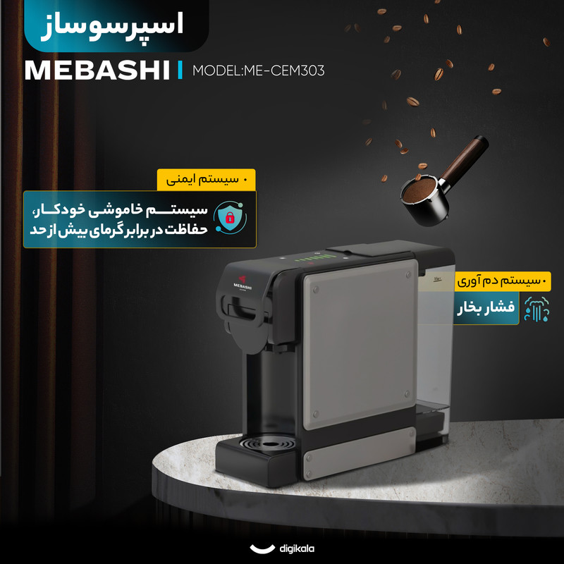 صفحه نمایش دیجیتالی و صفحه نمایش لمسی در اسپرسو ساز ۲۰۰۰ میلیلیتر مباشی مدل ME-CEM303 کنترل منو و تنظیمات را آسان میکند و مراحل دمآوری را بهصورت شفاف نمایش میدهد. سینی چکه گیر، نگهداری دستگاه را ساده میکند و مانع ایجاد لکه در زمان استفاده روزانه میشود. حضور سیستم خاموشی خودکار و حفاظت در برابر گرمای بیش از حد، ایمنی دستگاه را در محیط خانگی تضمین میکند. اسپرسو ساز ۲۰۰۰ میلیلیتر مباشی مدل ME-CEM303 همراه با دفترچه راهنما عرضه میشود و مجموعه ویژگیها و ظرفیت بالا این مدل را به گزینهای مناسب برای کاربرانی تبدیل کرده که به دنبال اسپرسو سازی کمدردسر، سریع و سازگار با انواع قهوه هستند.