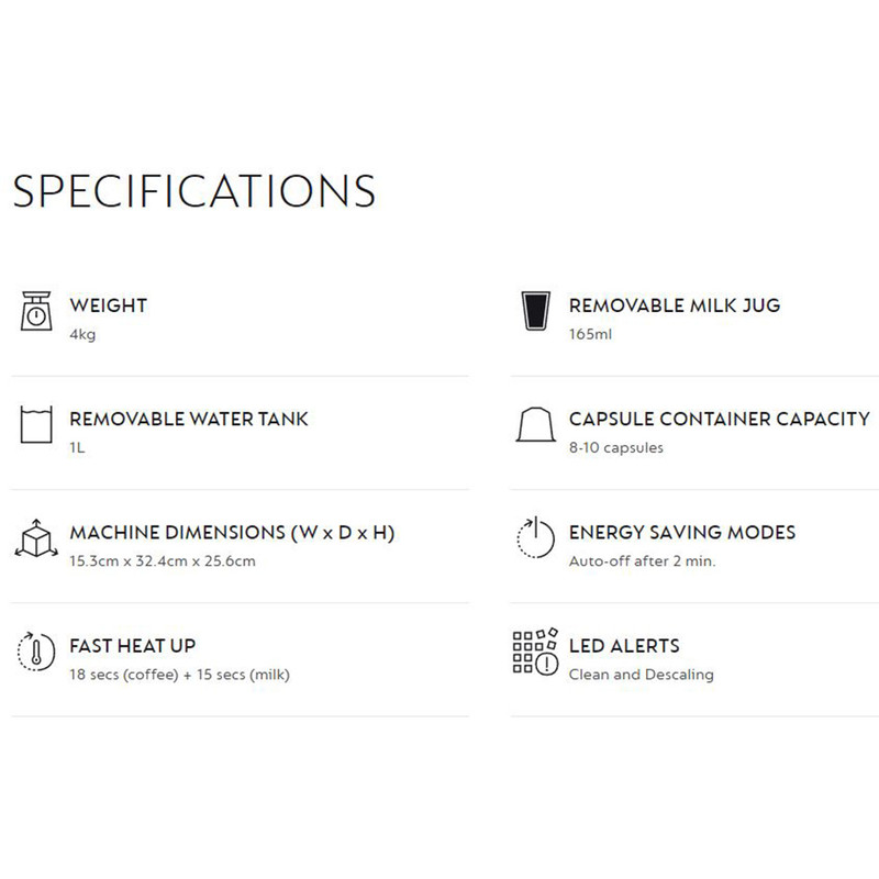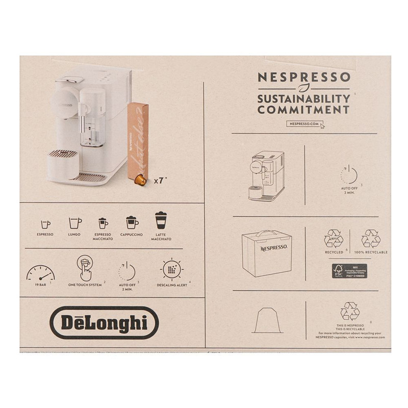 اسپرسوساز نسپرسو مدل لاتیسیما وان EN510 به سفارش شرکت نسپرسو و توسط دلونگی ایتالیا ساخته شده است تا با لمس یک دکمه و در کوتاهترین زمان ممکن بتوانید نوشیدنی مورد نظر خود را تهیه کنید. این دستگاه با فشار بخار 19 بار و توان 1450 وات و مخزن 1 لیتری آب و همچنین مخزن شیر 165 میلی لیتری با قابلیت شارژ مجدد درجا عرضه شده است. مدت زمان گرم شدن دستگاه 18 ثانیه می باشد و بعد از 2 دقیقه عدم استفاده از دستگاه به حالت ذخیره انرژی می رود. شستشوی مخزن شیر این دستگاه به صورت دستی می باشد و پس از اتمام کار با دستگاه مخزن شیر باید شسشتو و نظافت گردد. مخزن شیر دستگاه قابلیت قرارگیری در ماشین ظرفشویی را دارد و همچنین برای نگهداری شیر در یخچال نیز مناسب است. بر خلاف بسیاری از مدل های نسپرسو، مخزن شیر دستگاه بدون جدا شدن، قابلیت شارژ مجدد را دارد. دو چراغ هشدار دهنده رسوب زدایی و تمیز کردن دستگاه، روی پنل آن قرار گرفته است. به مانند دیگر دستگاههای سری لاتیسیما بعد از هر بار استفاده از قسمت فوم ساز چراغ نشانگر Clean روشن شده تا شما نسبت به تمیز کردن آن بعد از اتمام کار اقدام کنید. همچنین چراغ نشانگر رسوب زدایی Descaling به نسبت سختی آب منطقه شما ممکن است بعد از مدتی روشن شده و به شما هشدار رسوب زدایی دستگاه را بدهد. توصیه میشود از رسوب زدای شرکت نسپرسو و یا دلونگی برای این کار استفاده کنید. استفاده از آب معدنی به دلیل وجود املاح زیاد برای دستگاه اسپرسوساز توصیه نمیشود.