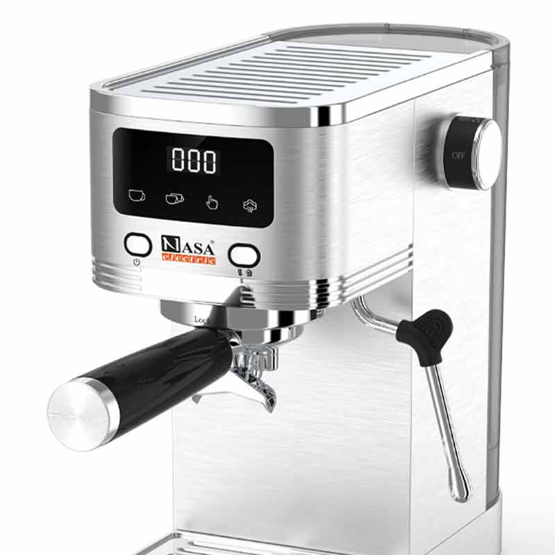 اسپرسوساز ناساالکتریک مدل NS-537 با فشار بخار 20 بار و پمپ ULKA ساخت ایتالیا، یک گزینه حرفهای برای تهیه اسپرسو باکیفیت است. بدنه این دستگاه از استیل ضد زنگ ساخته شده و مجهز به صفحه نمایش لمسی است که کاربری آن را ساده و مدرن میکند. مخزن آب شفاف با ظرفیت 1.3 لیتر، قابلیت جدا شدن دارد و تمیز کردن آن را آسان میسازد.