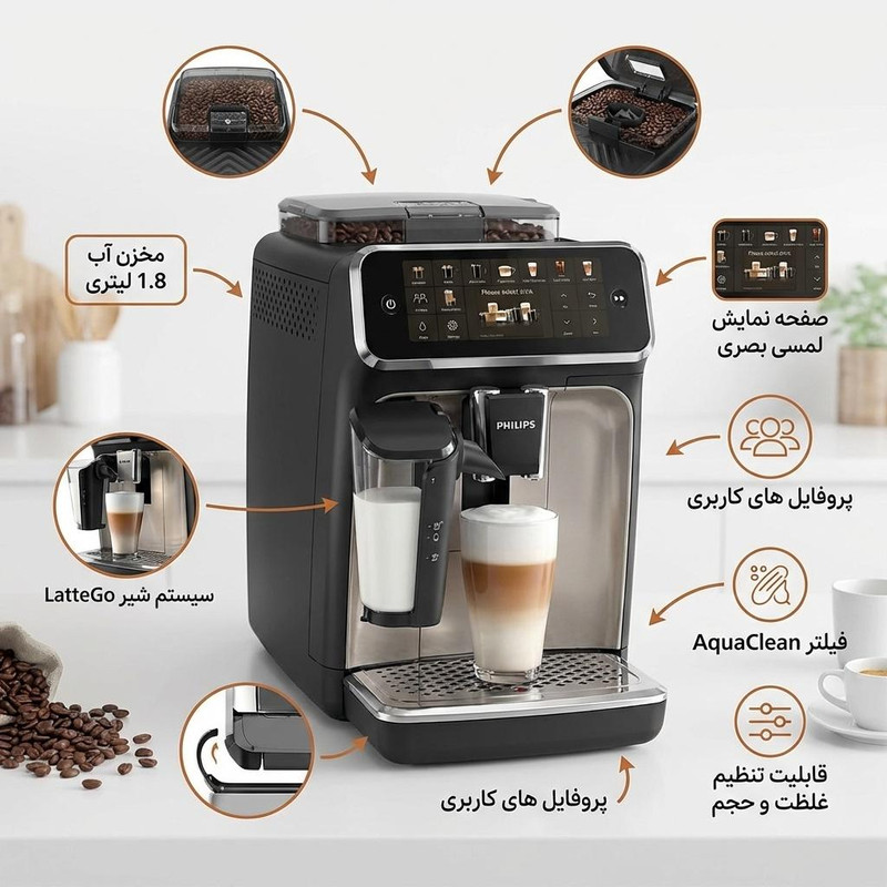 دستهبندی: اسپرسو سازابعاد: 37.1x43.3x24.6 سانتیمتروزن: 8 کیلوگرمشناسه کالا: 2620153170058نوع اسپرسوساز: اسپرسوساز