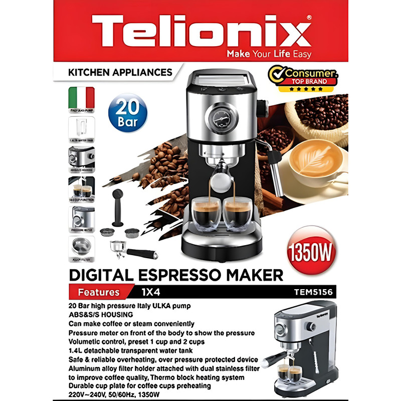 اسپرسو ساز 1 لیتری تلیونیکس مدل TEM 5156