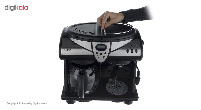 اسپرسوساز «اپکس» (APPEX) مدل «430» پرقدرت، حرفهای و البته بسیار کاربردی طراحی شده است. این محصول با فشار بخار بسیار بالا، ظرفیت 1.2 لیتری و توان مصرفی 1750 وات میتواند بازدهی مطلوبی برای مصارف با ظرفیت بالا داشته باشد. همچنین نشانگر سطح آب و سینی چکهگیر، کاربری آن را آسانتر میکند. مدل 430توانایی تهیهی اسپرسو با کیفیت بالا را دارد و برای این کار از مخزن آب 1.25 لیتری بهره میبرد که قابلجداشدن از دستگاه است. بویلر از جنس استیل ضدزنگ بوده و میزان بخار خروجی از دستگاه قابلتنظیم است. این محصول میتواند 10 فنجان قهوهی فرانسه تهیه کند. سیستم خاصی در این محصول برای انتخاب میزان غلظت قهوه از ملایم تا غلیظ در نظر گرفته شده است. قوری شیشهای مدرج مقاوم دربرابر حرارت برای تهیه و سرو قهوه وجود دارد. این دستگاه میتواند به صورت همزمان قهوهی اسپرسو و فرانسه (دو مخزن جداگانه) را آماده کند. اپکس عرضه کننده لوازم خانگی برقی است که با ارائه محصولات با کیفیت، کارآمد و اقتصادی خود را به خریداران معرفی کرده و رضایت آنها را جلب کرده است.