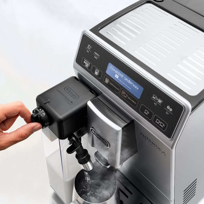اسپرسوساز دلونگی مدل ETAM29.660 از دستگاه های بسیار با کیفیت تولید شده توسط این شرکت با سابقه در تولید و ساخت قهوه ساز هاست. این مدل که به نام Autentica نیز شناخته می شود ساختاری ساده و در عین حال عملکردی فوق العاده دارد. این دستگاه با قابلیت تغذیه توسط دانه های قهوه، امکان آسیاب کردن آنها و استفاده از پودر قهوه حاصل را دارد و به این صورت طعم و بوی قهوه بسیار عالی خواهد شد. این دستگاه می تواند قهوه را در 13 درجه قابل تنظیم آسیاب کند. امکان تهیه انواع قهوه، شیر، کاپوچینو، کافه لاته، لاته ماکیاتو، تنها با فشار یک دکمه وجود دارد این به معنی آن است که هر کسی می تواند نوشیدنی خود را به سرعت سفارش دهد و تحویل گیرد. صفحه نمایش دو خطی و 166 زبان برای استفاده آسان و واضح از دستگاه از دیگر امکانات ویژه این محصول است. اسپرسوساز دلونگی مدل ETAM29.660 امکان شخصی سازی مقادیر شیر و قهوه را دارد تا علاوه بر تنظیمات پیش فرض دستگاه، کاربر بتواند مقادیر دلخواه خود را تعریف کند. این مدل با دارا بودن مخزن شیر و مکانیسم بخار دهی می تواند کف شیر تهیه کند تا نوشیدنی های ترکیبی قهوه و شیر سرو شوند. دریچه های خروجی قهوه طوری طراحی شده اند که می توان آنها را در ارتفاع بالاتر قرار داد تا لیوان یا ماگ نیز زیر دستگاه قرار گیرد. دلونگی از برند های شناخته شده در صنعت قهوه ساز ها محسوب شده و کیفیت بویلر ، آسیاب و سیستم بخاردهی آن برتری زیادی نسبت به سایر تولیدات این گروه کالایی دارد.