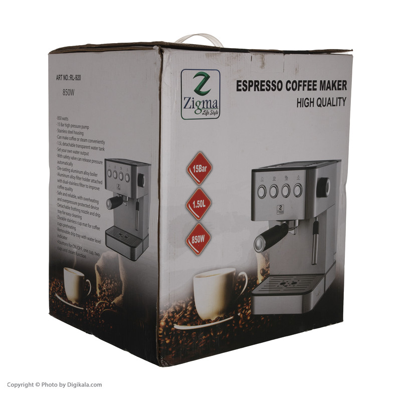 ما همیشه دنبال لوازم خانگی برای خانه مان میگردیم که علاوه بر کیفیت و کارایی بالا دارای ظاهر زیبا و فانتزی جهت ست کردن با سایر وسایل نیز باشد اسپرسوسازها نیز از این دسته مستثنا نیستند پیشنهاد ما به شما دستگاه اسپرسوساز زیگما مدل 920است. این دستگاه مناسب برای مصارف خانگی، محل کار، سوپرمارکتها، کافی شاپها کوچک و مکانهای مشابه است. اسپرسوساز زیگما مدل 920