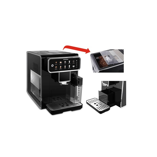 مخزن شیر جداگانه نیز با ظرفیت 300 میلی لیتر با قابلیت جداسازی از بدنه اصلی و تولید خودکار کف شیر دارد. از قابلیت های اصلی این اسپرسو ساز می تواند به تهیه انواع کاپوچینو ، اسپرسو ، کافه لاته ، آمریکانو ، ماکیاتو ، کف شیر ، آب جوش و سایر مشتقات قهوه را تهیه کنید. از دیگر قابلیت های این محصول دارا بودن گرم کن فنجان ، سینی چکه گیر ، سیستم خودکار خود تمیز کننده می باشد