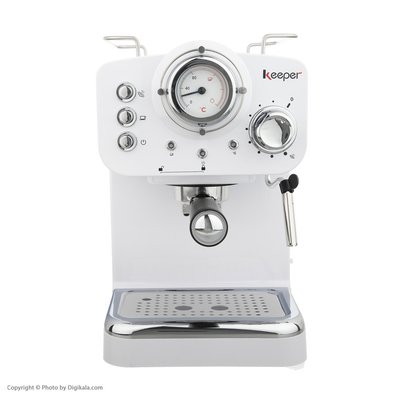 ما همیشه دنبال لوازم خانگی برای خانه مان می گردیم که علاوه بر کیفیت و کارایی بالا دارای ظاهر زیبا و فانتزی جهت ست کردن با سایر وسایل نیز باشد اسپرسوسازها نیز از این دسته مستثنا نیستند پیشنهاد ما به شما دستگاه اسپرسوساز و کاپوچینوساز کیپر مدل KPR-2005 است .کیپر مدل KPR-2005 مناسب برای مصارف خانگی ، محل کار ، سوپرمارکت ها ،کافی شاپ ها کوچک و مکانهای مشابه است .اسپرسوساز و کاپوچینوساز مباشی یک دستگاه نیمه صنعتی و همراه با تکنولوژی روز ژاپن است که دارای رنگ بندی سفید و مشکی است و جلوه خاصی به آشپزخانه و کافه شما میبخشد. این مدل با گرمای عالی نشان دهنده ی قدرت بسیار خوب است. اسپرسوساز و کاپوچینوساز کیپر مدل KPR-2005 دارای پیچ تنظیم بخار است.با فشار بخار 15 بار و با ظرفیت توان 1100 وات مجهز به نشانگر درجه حرارت، سیستم قطع خودکار و نازل تولید بخار است که از آن برای تهیه کاپوچینو و کف شیر و انواع نوشیدنیهای گرم استفاده می شود. این اسپرسو ساز آبِ جوش را با فشار خیلی زیاد از بین دانههای قهوهٔ آسیاب شده ریز میگذراند. قهوه اسپرسو غلیظتر از قهوههای دیگر بوده را خارج می کند و میتوانید آن را نوش جان کنید.