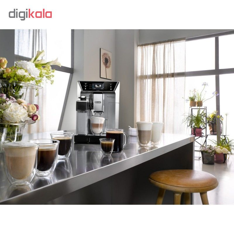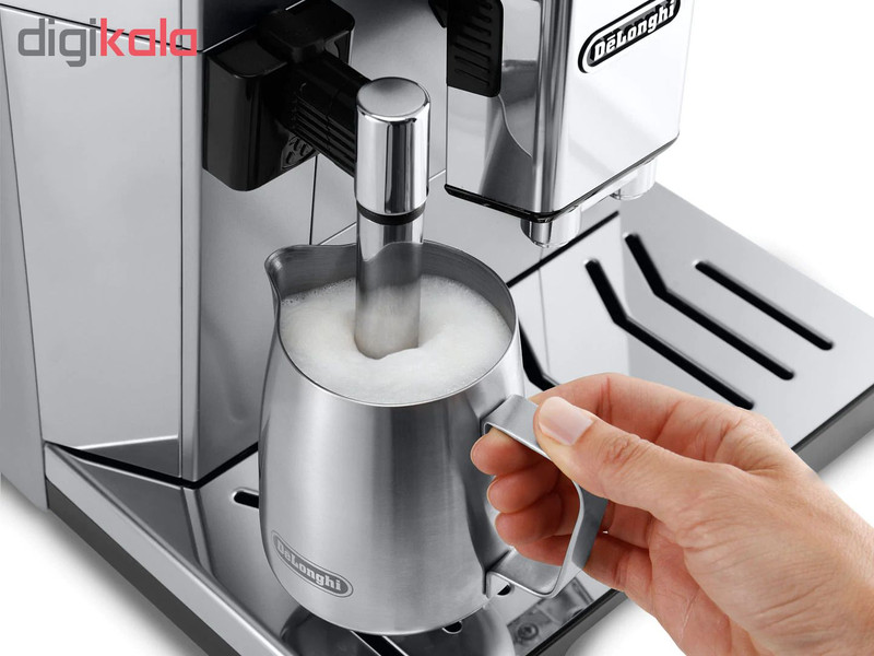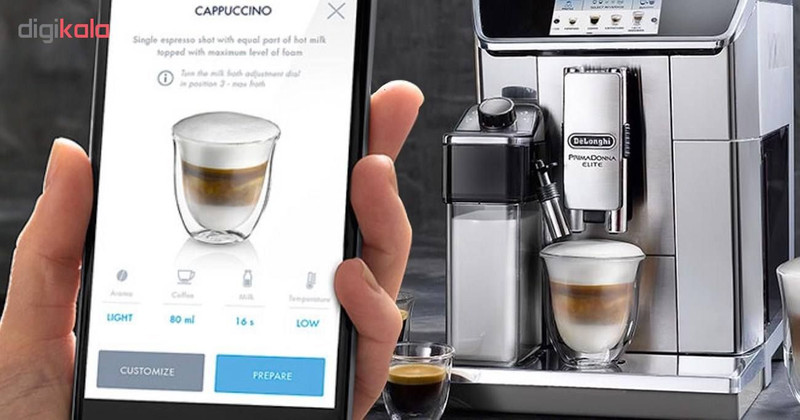 اسپرسوساز سوپر اتوماتیک دلونگی مدل Ecam 550.75 به راحتی هر زمان که میل اسپرسو داشته باشید تجربه یک کافی شاپ مجهز را برای شما تداعی میکند. صفحه نمایش رنگی با راهنمای کامل راه اندازی از صفر تا 100 شما را بی نیاز از هر گونه باریستا میکند تا به راحتی و با یک لمس بهترین نوشیدنی های قهوه را داشته باشید. سیستم کف ساز دو حالته دستگاه به شما این امکان را میدهد تا کف شیر را به صورت اتوماتیک و یا دستی با پارچ بتوانید تهیه کنید. آسیاب 13 حالته نیز داخل دستگاه گنجانده شده تا عطر و طعم قهوه را همان ابتدا به بهترین شکل تجربه کنید. همچنین امکان اتصال دستگاه به WIFI و قابلیت کنترل از روی تلفن همراه برای سفارشی سازی قهوه مورد نظر خود شما را شگفت زده خواهد کرد.